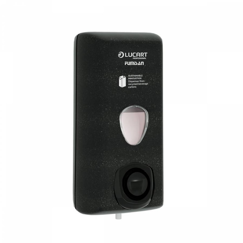 Dispensador ecológico de la gama Econatural de Lucart, fabricado a partir de polietileno y aluminio reciclado, con capacidad para 0,55L de jabón líquido o gel hidroalcohólico.
